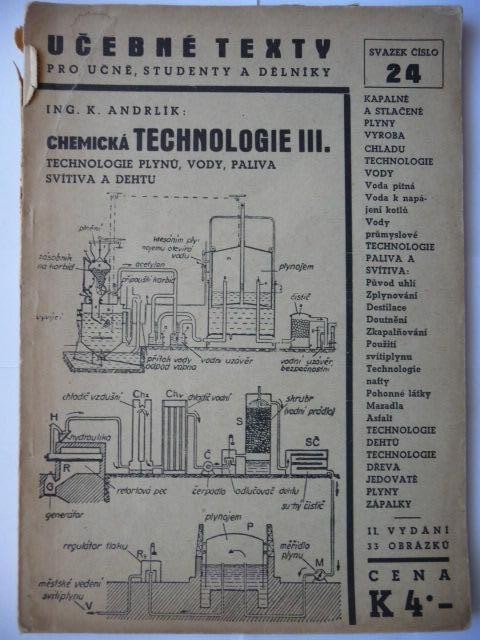 Andrlík, Karel: Chemická technologie 3 Technologie plynů, vody, paliva, svítiva a dehtu, 1940]