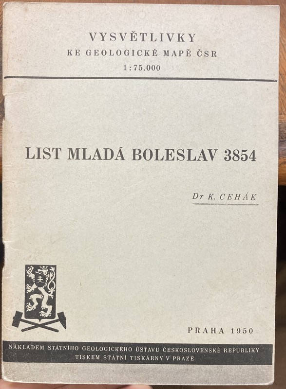 Cehák, Karel: MLADÁ BOLESLAV MAPA KNIHA Vysvětlivky ke geo. mapě ČSR 1:75 000, 1950