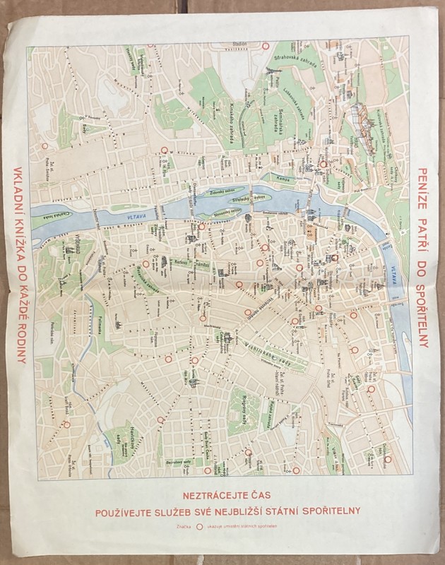 Česká státní spořitelna: MAPA PRAHA POBOČKY STÁTNÍ SPOŘITELNY, 1960