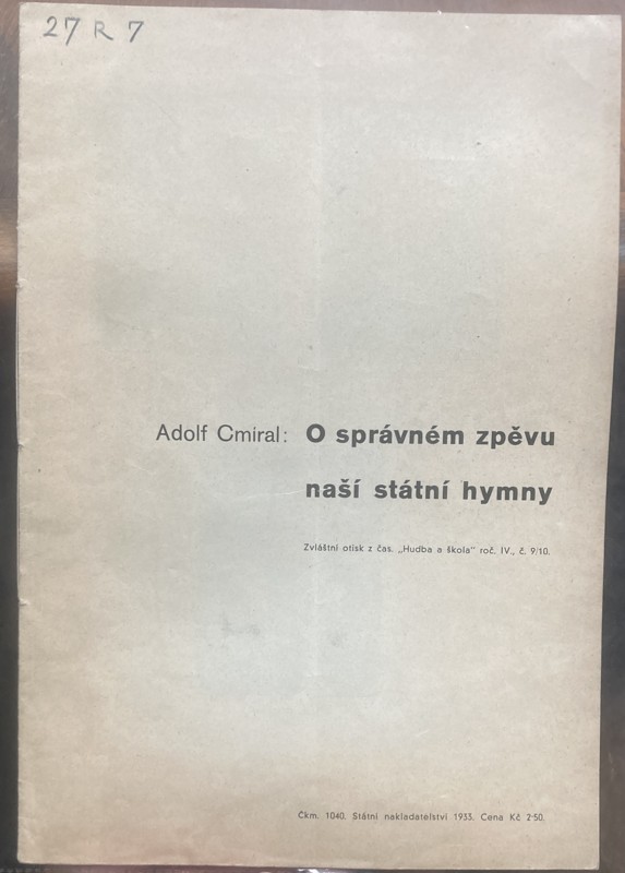 Cmíral, Adolf: O správném zpěvu naší státní hymny., 1933