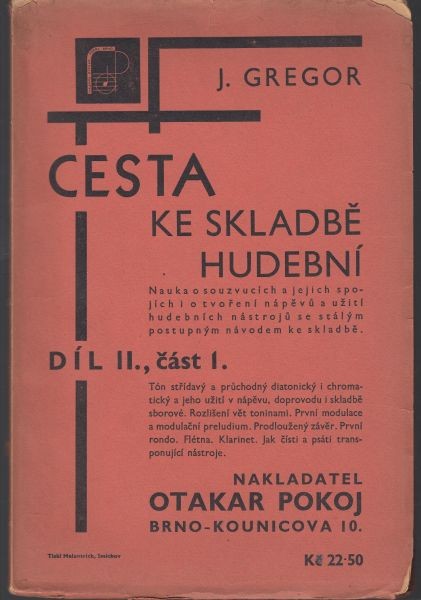 Gregor, Josef: 2SVAZKY Cesta ku skladbě hudební Nauka o souzvucích a jich spojích i o tvoření nápěvů a ..., 1932