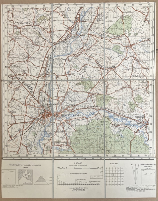 HRADEC KRÁLOVÉ MAPA 1:50.000, 1952
