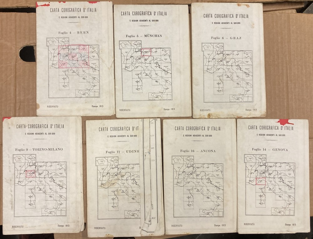 ITÁLIE A OKOLÍ. 7X MAPA Z KOMPLETU O 28 KUSECH. 1:500.000, 1913